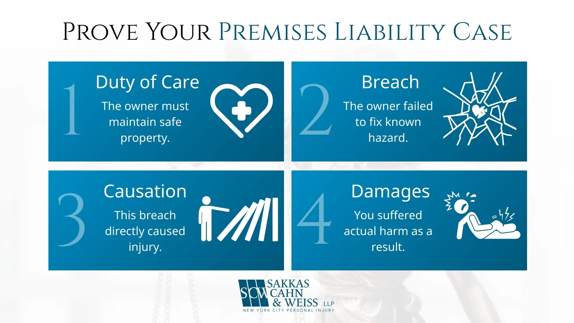 Las condiciones peligrosas de la propiedad pueden dar lugar a una variedad de demandas legales en Nueva York, cada una de las cuales requiere pruebas específicas de negligencia.